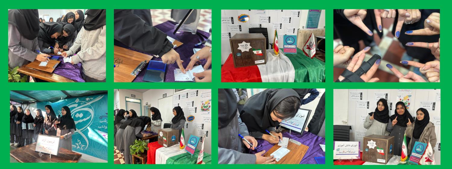 در تاریخ دوازدهم آبان ماه انتخابات شورای دانش آموزی در فضای مدرسه بسیار با شور و نشاط برگزار گردید که منتخبین به شرح زیر می باشد.